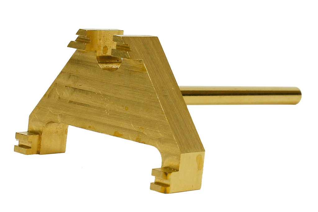 Beautiful quality milled brass 3-point track gauges, with handle. Made to OO-SF standards and used for the creation of pointwork with fine flangeways that will still accept RTR models out of the box with no need for modification.