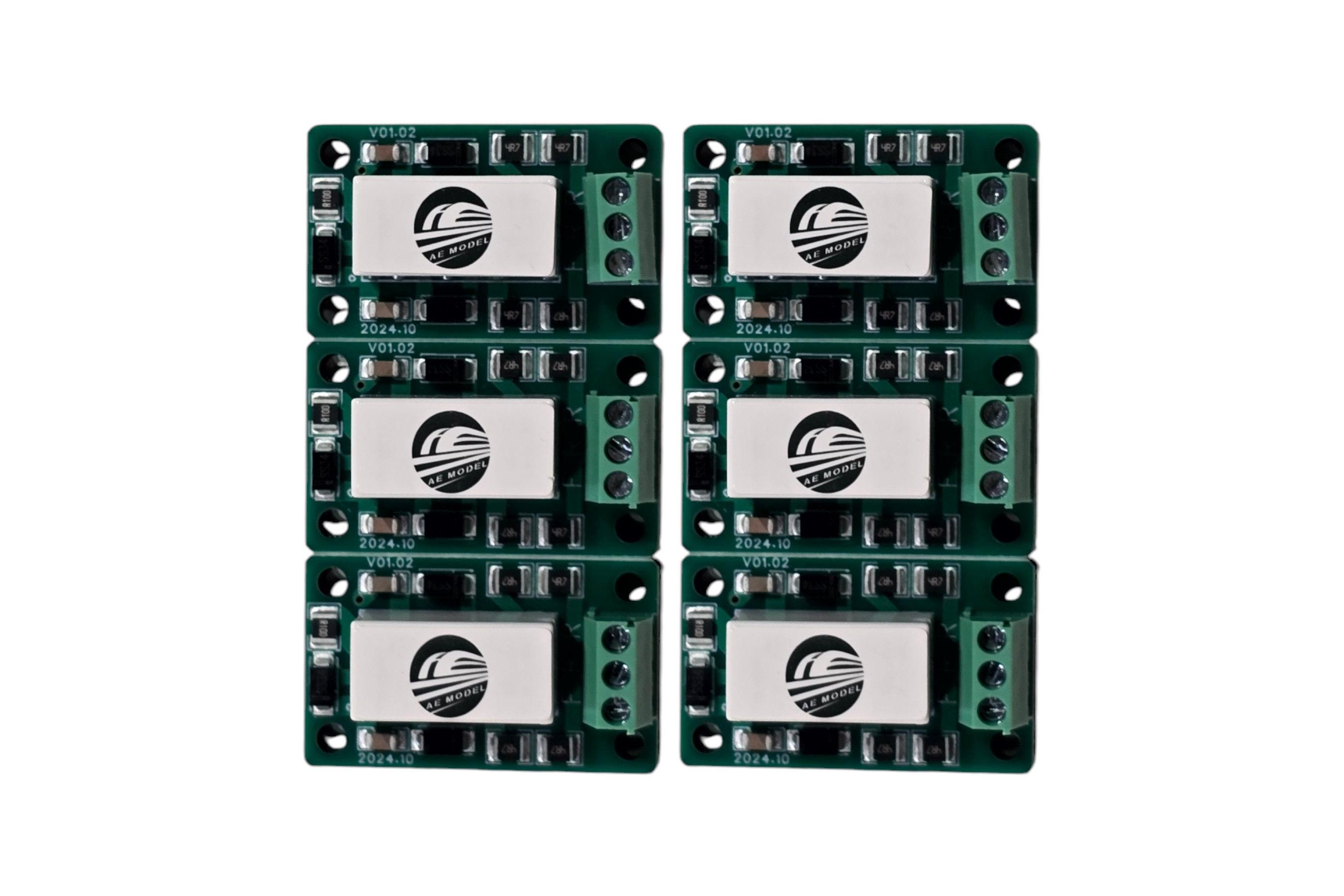Developed with advice from the real DCC experts, the AE Model Frog Power Control makes installation easier, limits the possibility of voltage spikes on your track bus and removes the risk of unwanted short circuits.