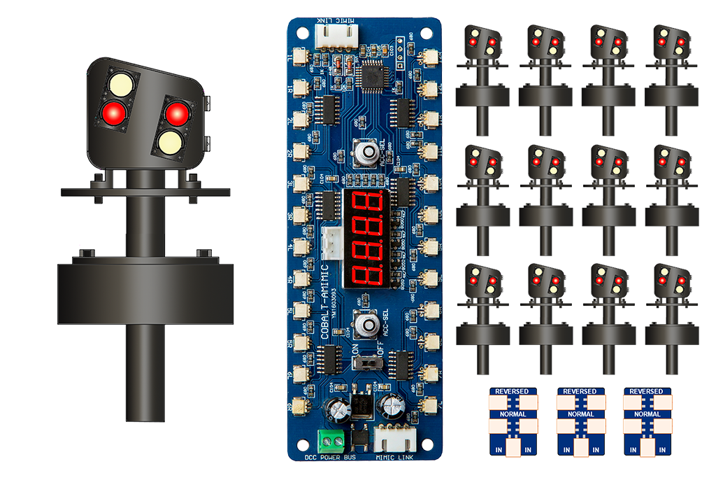 ALPHA MIMIC 12x 4 LED UK Modern Ground Signal – A pack of 12 x 4-lamp plug and play signals in 4mm scale (OO), complete with installation adapters, control board and accessories and even the drill needed for the adapters.
