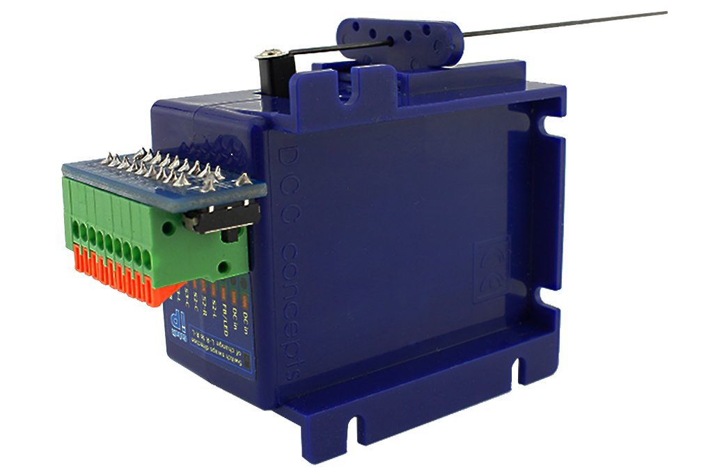 The Cobalt iP is supplied with the throw bar already centred for easy installation and it has three “break before make” changeover switches. One is a low power SPDT switch linked to the Cobalt iP drive power directly to allow easy connection of low current lighting (for example panels or signals) or for linking to your computer or system control to report turnout position. The other two are super high power SPDT switches suitable for up to 5 amps continuous power handling and so are usable for frog polarity, interlocking or many similar applications.