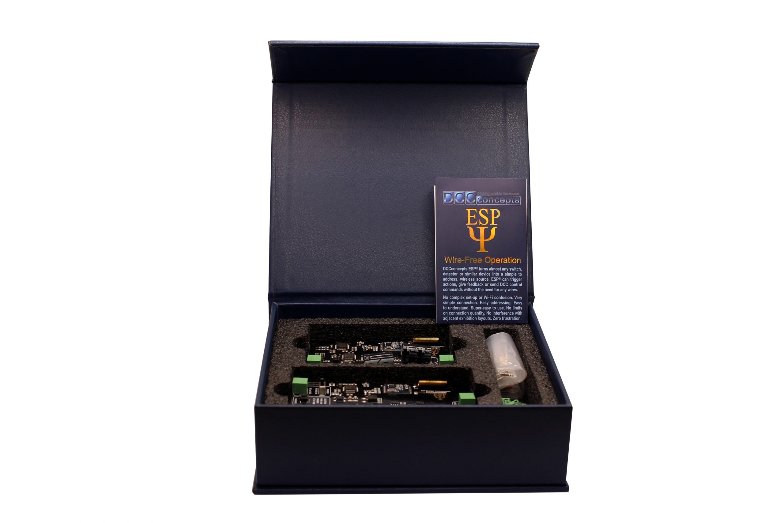 This Starter Set contains everything you need to get going with ESP®! Just add more transmitters when you’re ready to add more devices to your system! Presented in a smart leather box, your ESP® Starter Kit will reach you in perfect condition and could make the perfect gift!