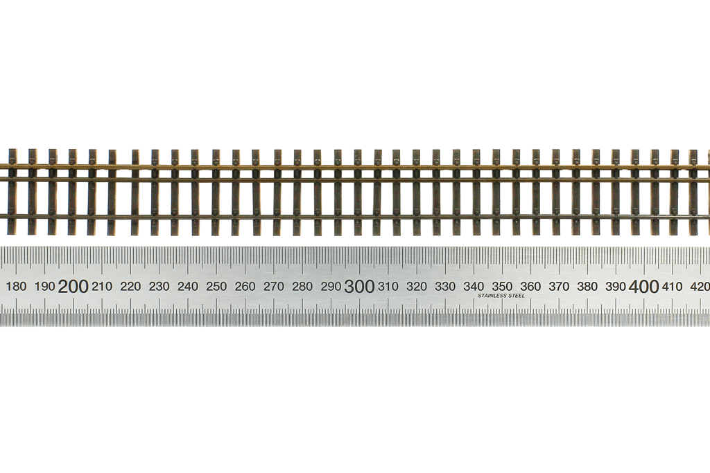 Tillig code 83 HO/HOe dual gauge pre-weathered wooden sleeper flex track, 470mm long / individual.