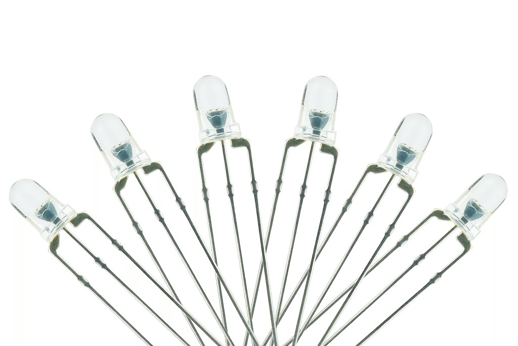 A pack of 6 x red/yellow 3mm T1 LEDs with flange. 3-lead common positive for DCC compatibility. Pack includes 6 x 1k resistors.