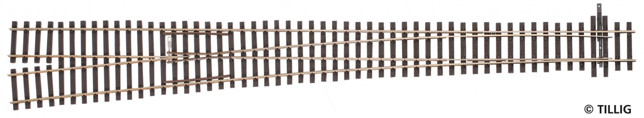 The 85347 is a superb semi-flexible LH turnout with a gentle 2200mm radius that looks fantastic on main running lines. The gentle #9 / 7 degree frog angle makes it a truly high speed point!.