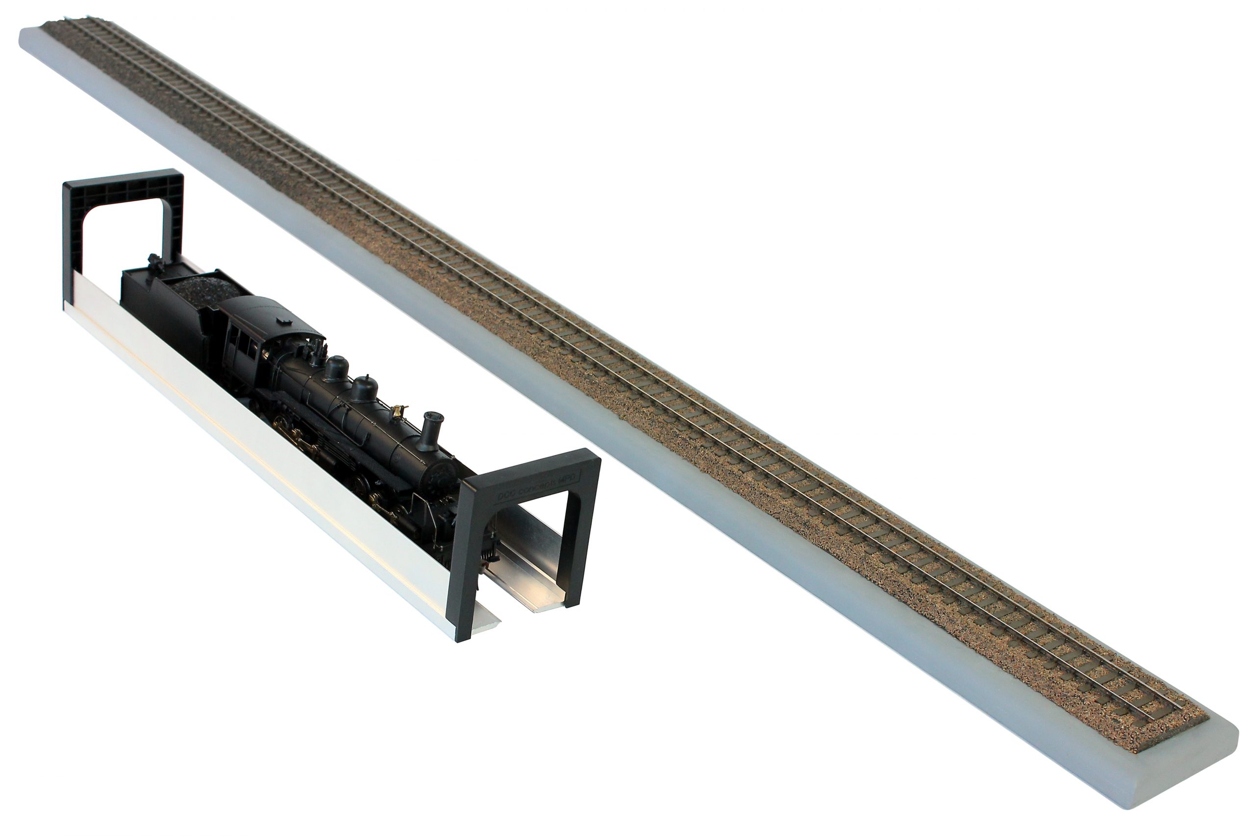 360mm MPD. Drive on/off loco storage that also functions as a service cradle. No more need to plug and unplug loco and tender, perfect for taking locos to the club. So secure you can even post a loco across the world in it! MPD360 fits all but the biggest single frame locomotives.