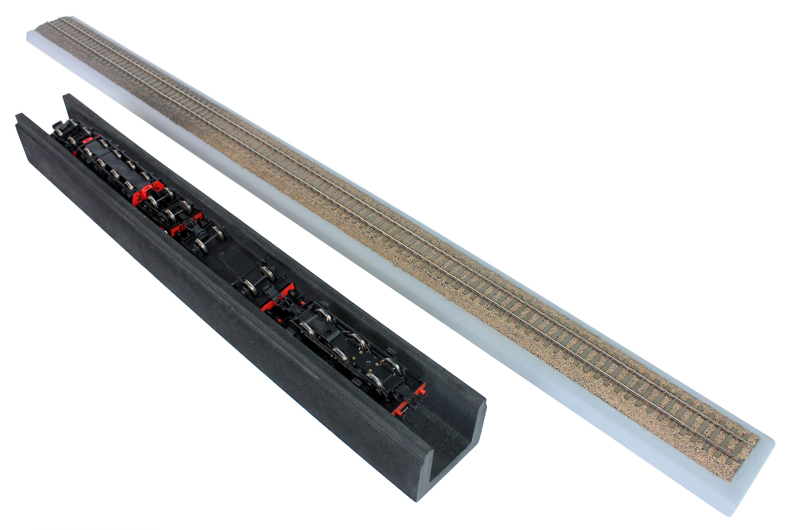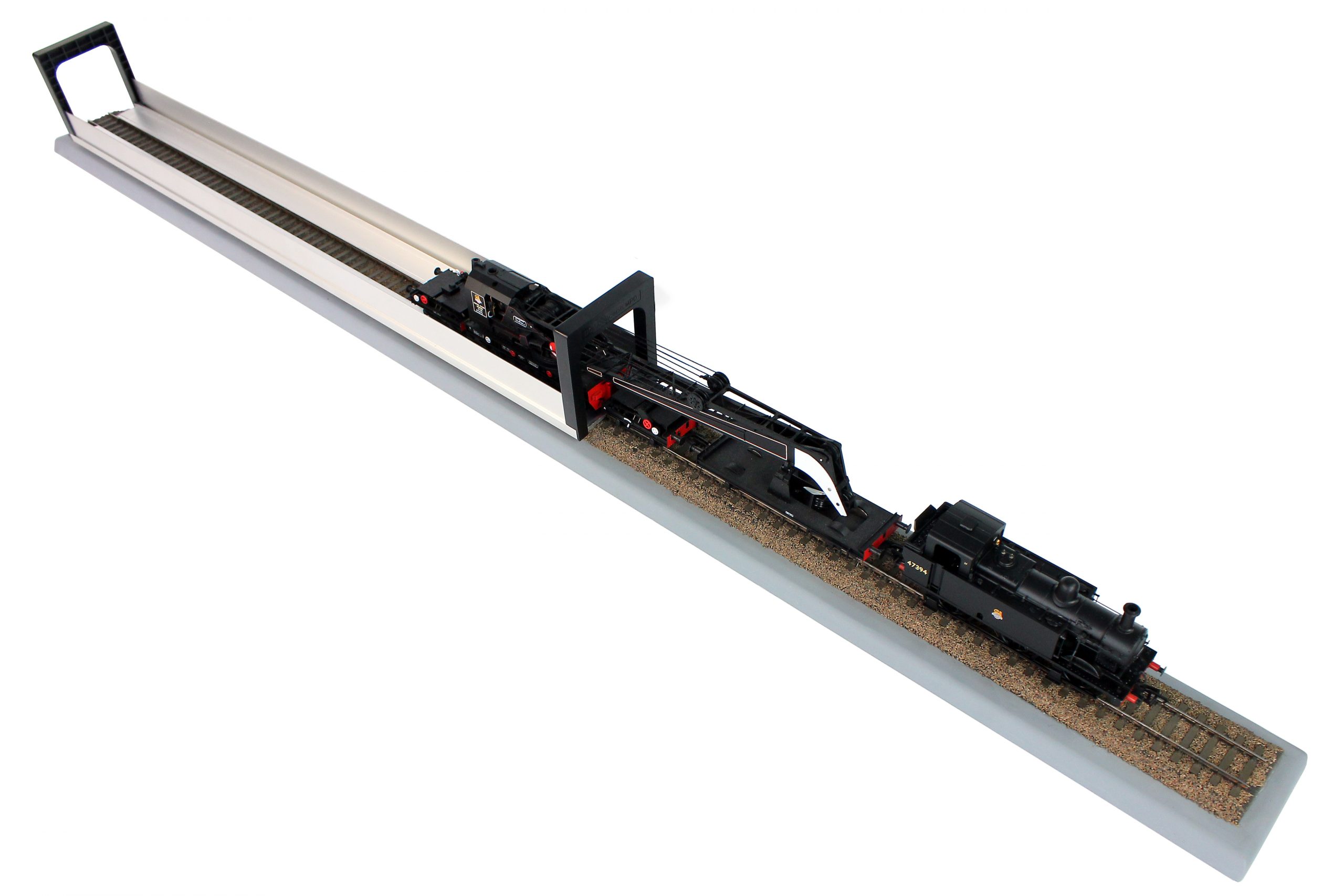560mm MPD. Drive on/off loco storage that also functions as a service cradle. No more need to plug and unplug loco and tender, perfect for taking locos to the club. So secure you can even post a loco across the world in it! MPD560 is big enough for a Big Boy, 2-car English EMU/DMU or US prototype A-B-A Set of F units.