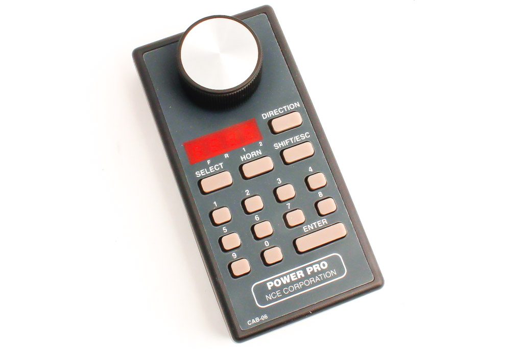 The NCE Engineers Throttle with Digital Display is an intermediate throttle with a 4 digit loco number display.