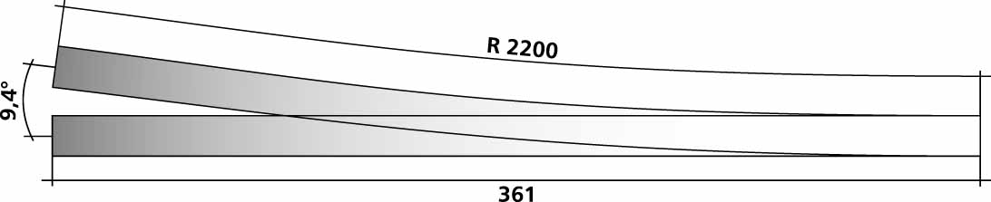 Tillig Elite HO Track & Pointwork Home / Track & Track-Making Parts / Tillig Elite Track & Pointwork / Tillig Elite HO Track & Pointwork / Tillig 85326 RH Wide Point HO 9.4 Degrees L=361mm R=2200mmTillig 85326 RH Wide Point HO 9.4 Degrees L=361mm R=2200mmPrice: £47.88Tax FreeThe 85236 is a superb semi-flexible RH turnout with a gentle 2200mm radius that looks fantastic on main running lines. #9 / 7 degree frog angle.In stock QTY Tillig 85326 RH Wide Point HO 9.4 Degrees L=361mm R=2200mm quantity Add to basket SKU: TLG-85326 Category: Tillig Elite HO Track & PointworkRelated products Tillig 85323 RH Standard Point HO 15 Degrees R=484mm Price: £30.38Tax Free Out of stock - Get notifiedWant to be notified when this product is back in stock? Notify me Part:TLG-85323 Tillig 85373 RH Curved Point HO Exit: 9 and 12 Degrees (934mm and 543mm) Price: £32.46Tax Free In stock QTY Tillig 85373 RH Curved Point HO Exit: 9 and 12 Degrees (934mm and 543mm) quantity Add to basketPart:TLG-85373 Tillig 85333 RH Curved Point HO Exit: 9 and 12 Degrees (543mm and 377mm) Price: £32.46Tax Free In stock QTY Tillig 85333 RH Curved Point HO Exit: 9 and 12 Degrees (543mm and 377mm) quantity Add to basketPart:TLG-85333 Tillig 85324 LH Standard Point HO 15 Degrees R=484mm Price: £30.38Tax Free In stock QTY Tillig 85324 LH Standard Point HO 15 Degrees R=484mm quantity Add to basketPart:TLG-85324