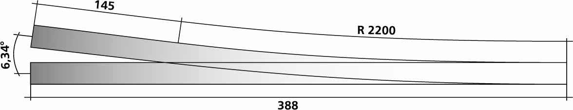 The 85346 is a superb semi-flexible RH turnout with a gentle 2200mm radius that looks fantastic on main running lines. The gentle #9 / 7 degree frog angle makes it a truly high speed point!.