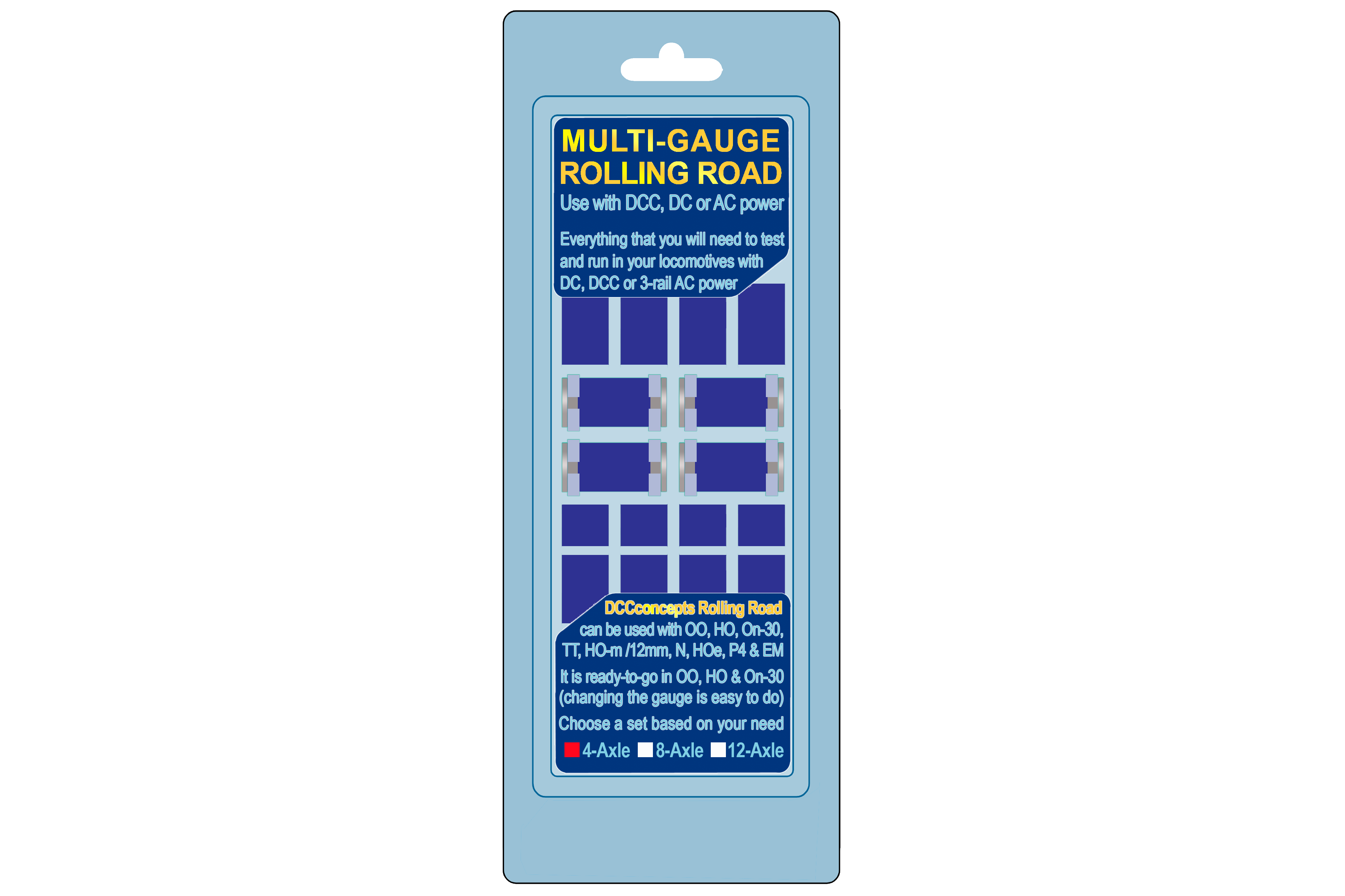 DCCconcepts Rolling Roads are very easy to use… You simply place them on the track (spaced ready for your locomotive). Incredibly versatile, they help with running in, testing and evaluation of locomotive performance, active cleaning of driving wheels, simpler DCC Setup and all kinds of tweaking to be achieved in front of you, on the desk or workbench.