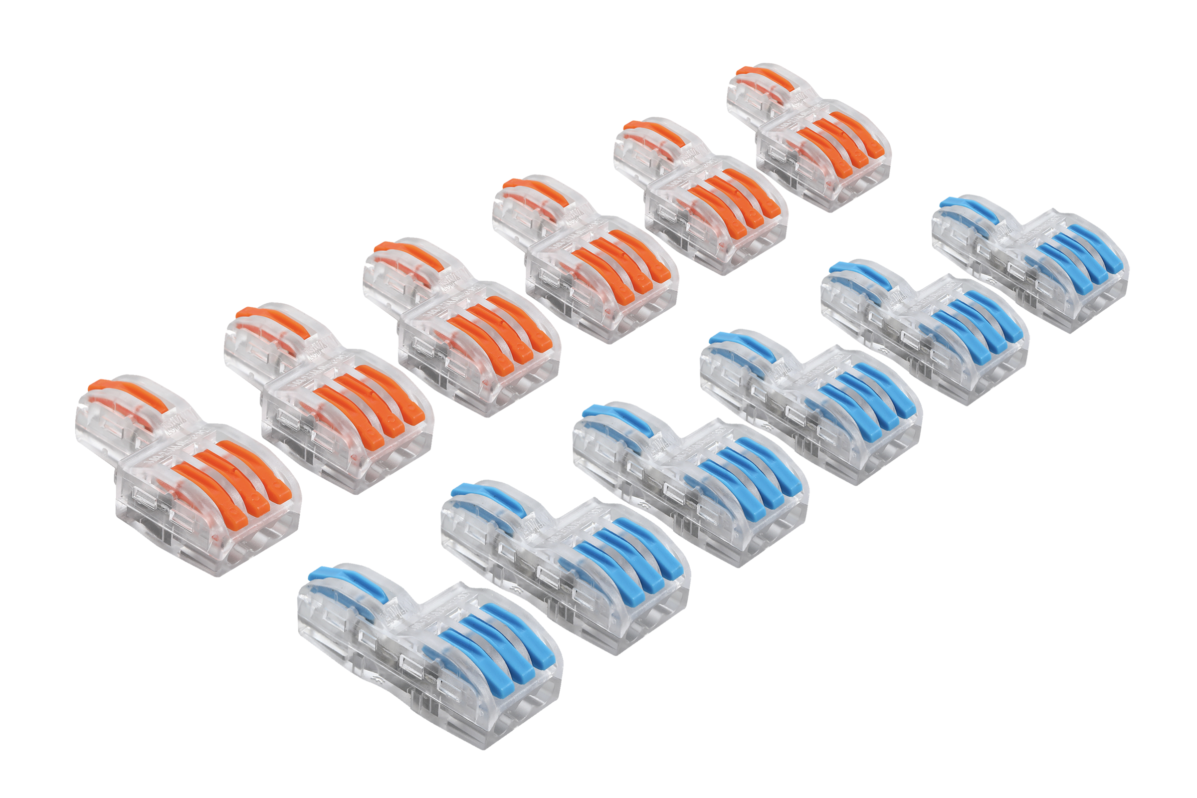 Similar to DCW-iLCS.6 but with separate blue and Orange sections. The DCW-iLSS.12 pack contains 12 x 1 Terminal IN, 3 terminal OUT connectors (6 have Orange flags, 6 have Blue).