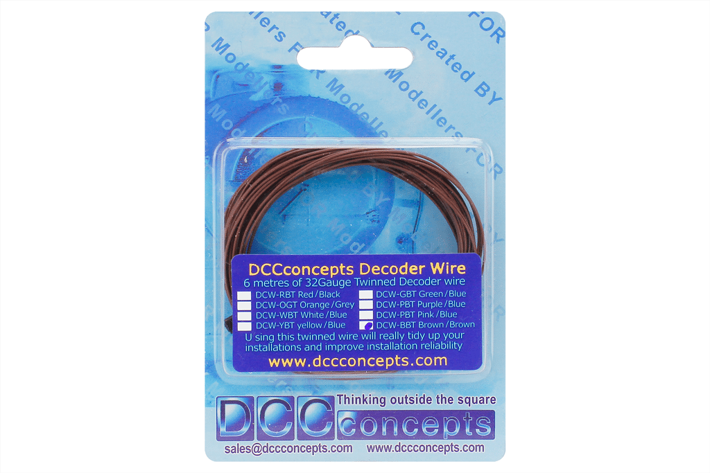 6 metres of twinned BROWN and BROWN Stranded 32 gauge Decoder wire – When it comes to installations, tidiness matters, especially where space is limited. It also makes for a more reliable installation! This twinned wire is REALLY helpful for keeping all of your connections tidy within the locomotive.