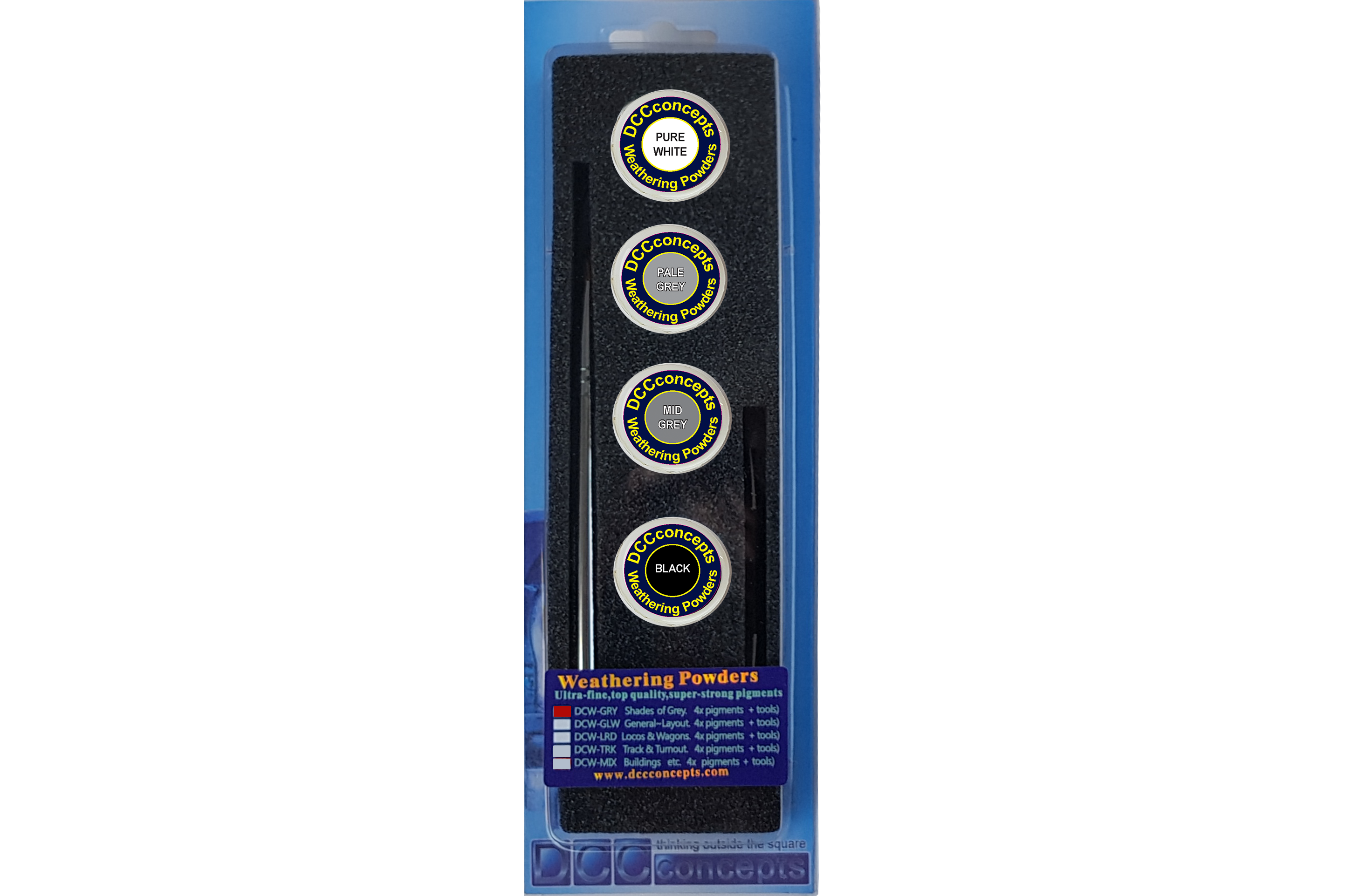 This pack contains four shades of grey for general layout weathering.