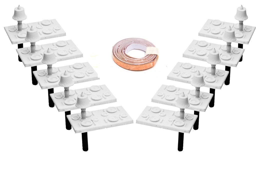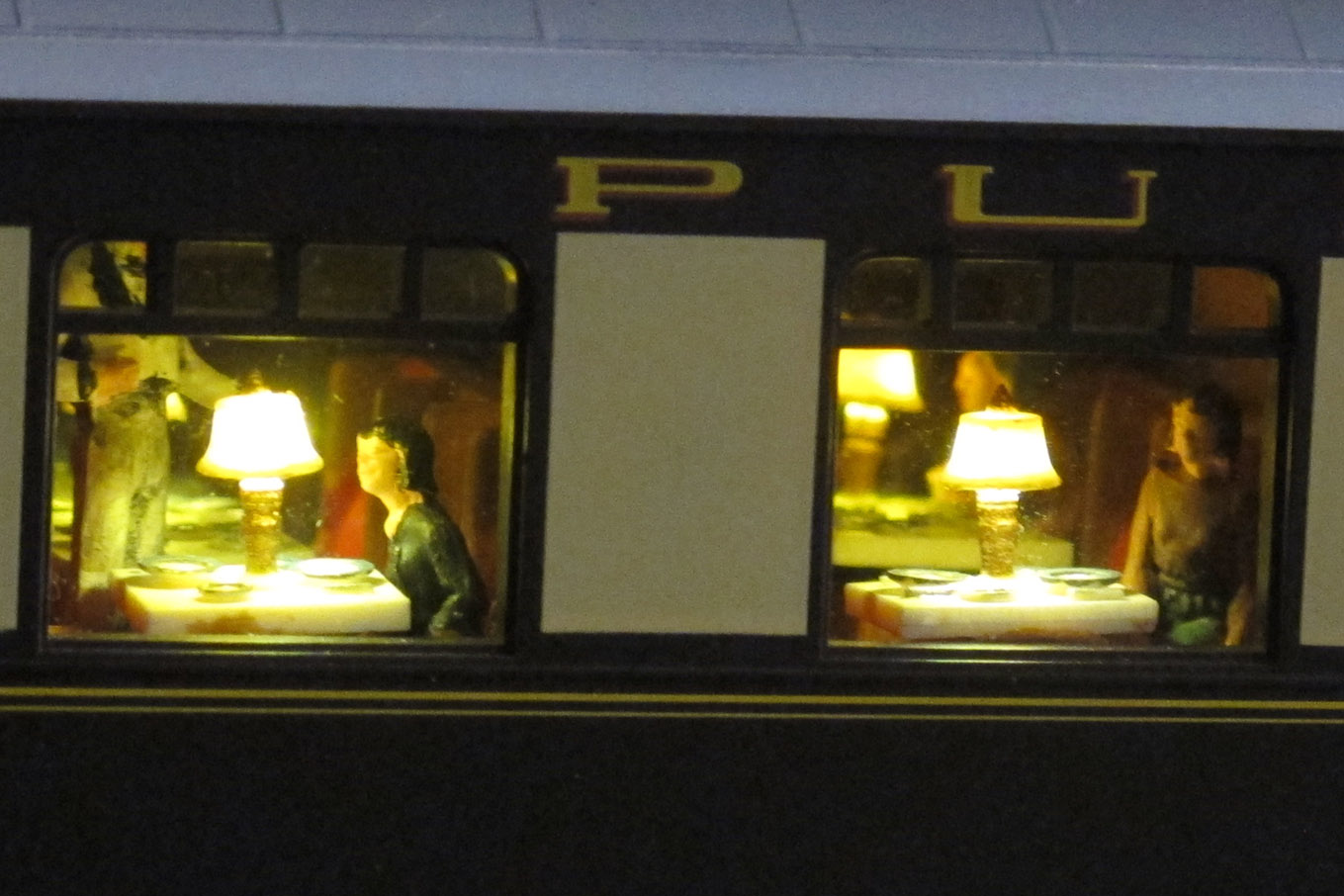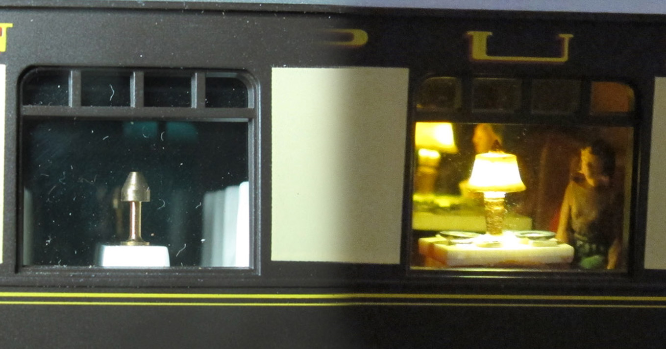 10x Pullman table lamps with properly set tables and working accurately modelled lamps and shades. A truly realistic approach to interior modelling in restaurant cars and Pullman coaches for the steam era and beyond.