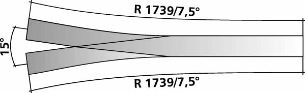 The 85381 is a medium wye point with 7.5 degree angle each side and an effective radious of 1739mm.